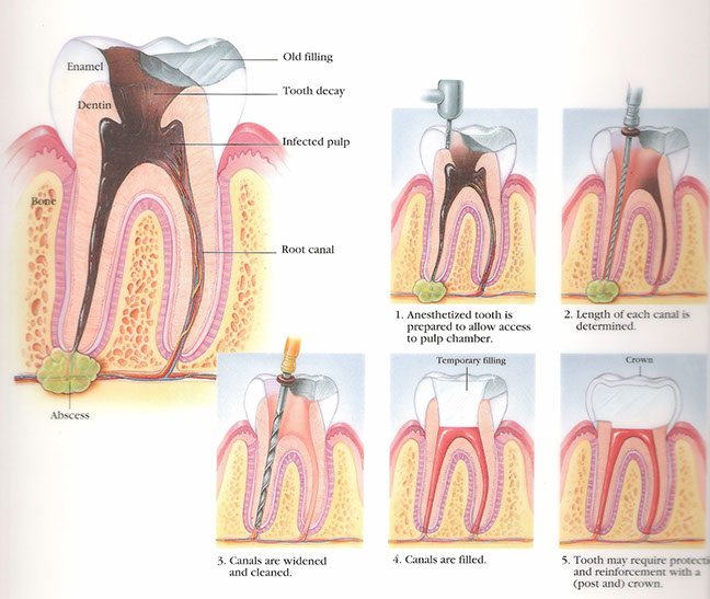 In interiorul camerei pulpare si canalelor radiculare se gaseste pulpa dentara (“nervul”) care este alcatuita din vase, nervi si tesuturi. Afectiunile dentare, inclusiv fracturile, pe masura ce evolueaza, pot afecta integritatea pulpei dentare si pot produce infectii ale acesteia.