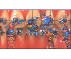 Realizati miscari circulare actionand numai cu perii peste aparatul dentar, evitand lovirea bracketilor cu partea de plastic a periutei dentare.