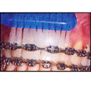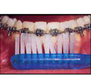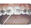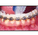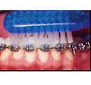 Spatiul dintre doi bracketi se igienizeaza cu ajutorul periutei interdentare, realizand miscari verticale pe sub arc.