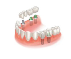 Puntea dentara: poate inlocui mai multi dinti , fiind necesare cel putin 2 implante.