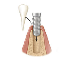 Prima etapa consta in introducerea implantului in osul alveolar. Este o procedura care se realizeaza in anestezie locala. Postoperator poate aparea un discomfort la nivelul zonei de aplicare a implantului care poate fi reprezentat de : inflamatie, echimoze la nivelul gingiei si a pielii, durere in zona implantului, usoara sangerare. In majoritatea cazurilor insa, recuperarea dupa aplicarea unui implant este rapida.